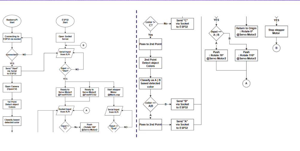 - ESP32: Raspberry Pi로부터 전달받은 분류 결과를 바탕으로 모터 제어 수행